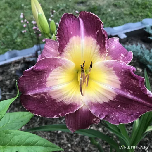 Лилейник Малазиан Монарх– травянистый корневищный многолетник. Размер Высота - 60 см; диаметр цветка - 15 см. Крупные цветы пурпурного цвета с большим кремовым горлом. Раннее и обильное цветение. Полувечнозеленый, тетраплоид. Цветение Среднеранний (конец июля); повторное.