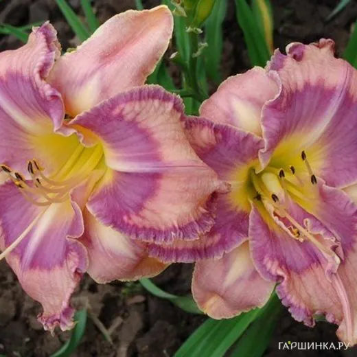Лилейник Милдред Митчел– травянистый корневищный многолетник. Высота - 66 см; диаметр цветка - 17 см.Розово-лавандовый с голубоватым глазом и такой же каймой по краям гофрированных внутренних лепестков. Душистый. Вечнозеленый, тетраплоид. Цветение Среднеранний (конец июля); повторное.