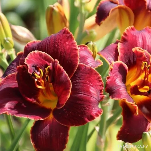 Лилейник Найт Эмберс– это изысканное многолетнее растение, которое станет украшением любого сада благодаря своим насыщенным темно-бордовым цветам с золотистым ободком. Его ботаническая классификация относит его к семейству Ксанторреевых. Это травянистое растение, достигающее высоты 60-80 см, характеризуется кустовым типом роста и образует густые пучки из длинных линейных листьев. Лилейники не имеют шипов и колючек, что делает их безопасными для использования в саду и на клумбах.