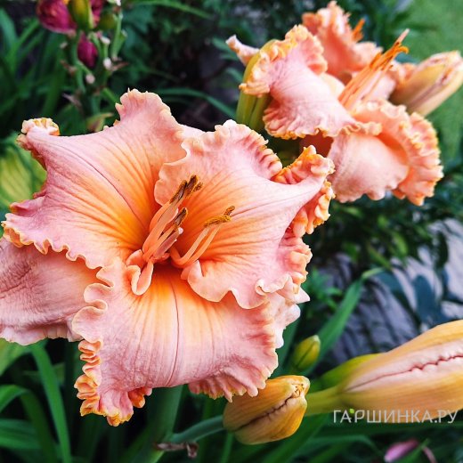 Лилейник Спейскоаст Старбёрст– травянистый корневищный многолетник. Высота растения 65 см, диаметр цветка 14 см. Теплый, розово-лавандовый оттенок. Сильно гофрированная контрастная золотистая кайма, светло-желтое гало вокруг желтого горла. Цветение обильное, с конца июля. Повторноцветущий. Вечнозеленый, тетраплоид.