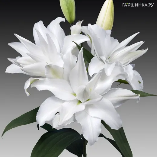 Лилия Май Веддинг восточная махровая Цветок густомахровый, белоснежного цвета. Лепестки волнистые, а кончики слегка закручены. Высота 120 см. Стебли прочные, облиственные. Цветки лилии 20 см в диаметре. Насыщенный сладкий аромат. Период цветения июнь-июль.