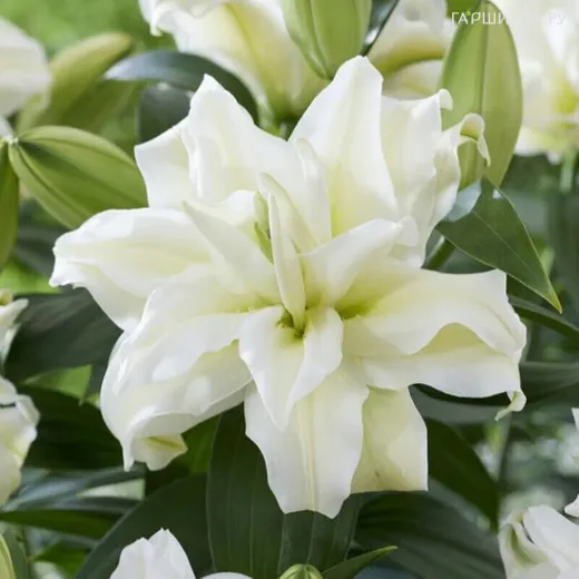 Лилия Зита восточная розовидная - махровая, белая с желтым центром без пыльцы. Цветы ароматные, диаметром 21 см, высота растения до 100 см. Цветет с июля по август, можно использовать как для срезки, так и для озеленения. Морозостойкость до -29 ° С