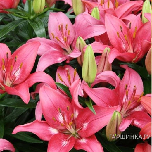 Лилия Тренди Дакота азиатская низкорослая - относится к азиатским гибридам. Цветки яркого малинового оттенка с небольшими мазками белого цвета в центральной части. Диаметр цветка 14-16 см. Высота взрослого растения 55 см. Сорт неприхотливый, устойчивый к грибным заболеваниям, зимостойкий. Идеально подходит для выращивания в контейнерах, горшках, уличных вазонах. Подойдет для составления букетов, так как не имеет сильного аромата и не производит пыльцу. Для посадки лилии подойдет солнечное, защищенное от сильных ветров, но продуваемое место, без застоя воды и влажного воздуха. Время цветения с июня по август.
