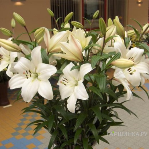 Лилия Литоувен ЛА-гибрид белая Высота 125 см. Цветение июль, через 85 дней после посадки. Чисто-белый, крупный цветок до 17 см.