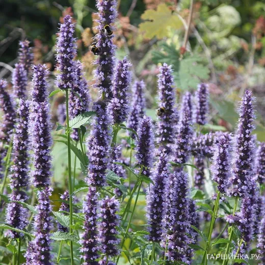 Лофант (Агастахе) Блэк Аддер - имеет дымчато-синие цветы, они собраны в колосовидные соцветия, которые отлично смотрятся на фоне зеленых листьев. Предпочитает солнечные места и хорошо дренированную почву, но не выносит сырости и сильного затенения. Имеет чудесный аромат. Цветеение с июля по сентябрь. Неприхотлив в уходе, зимостоек и устойчив к болезням.