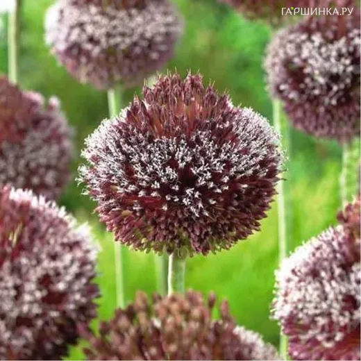 Лук декоративный Forelock - красивый сорт декоративного лука с темно-пурпурными соцветиями подернутыми белой паутинкой распустившихся цветов, диаметр соцветий 5-6 см, цветет в июне-июле, высота 40-50 см. Зона зимостойкости: 4 (-35 С)