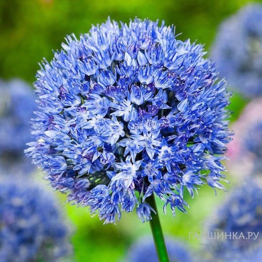 Лук декоративный Керулеум - часто именуют королевским луком. Высота составляет 40 см. На конце цветоноса — плотное шаровидное соцветие диаметром до 8 см изумительного чисто-голубого цвета. Цвет шара меняется в процессе цветения - от голубого до сиреневого, потом меняет цвет на серебристый. Цветки лука колокольчиковой формы. Срок цветения в средней полосе России — июнь-июль. Продолжается цветение до полутора месяцев. Зона зимостойкости: 4 (-35 С).