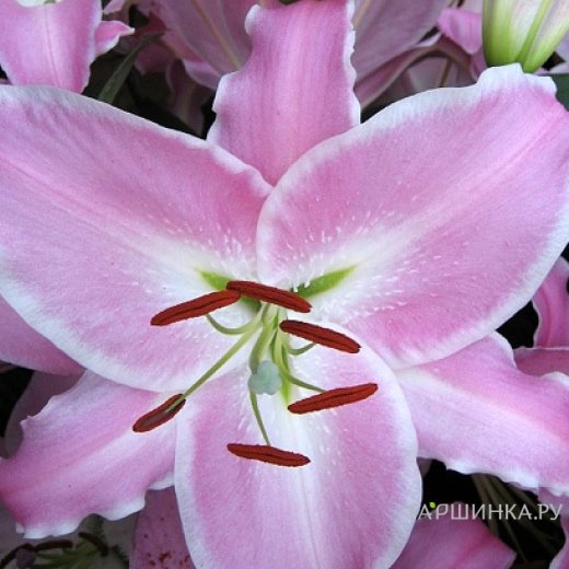 Лилия Мэйбел восточная/2шт - Цветки крупные, хороший аромат. Цветок перламутрово-розовый с белым центром и белым контуром, гофрированный край лепестков. Высота: 120 см. Зона зимостойкости: 3 (-40 ° С).