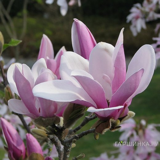 Цветки розово-белые, звездчатой формы. Даметр до 8 см.