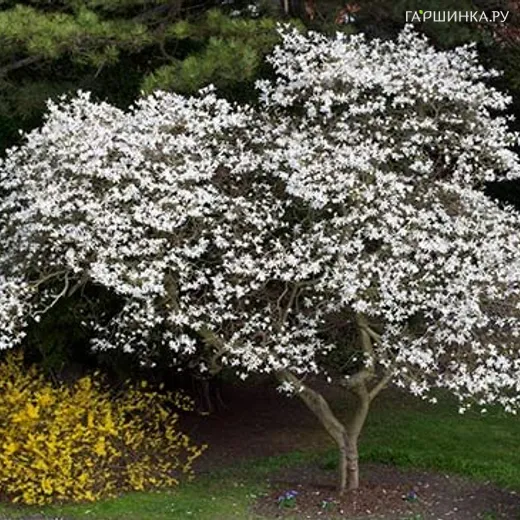 Магнолия кобус - красивоцветущее листопадное дерево родом из Центральной и Северной Японии. Высота в культуре достигает 10 м, диаметр ствола 30-40 см. Крона в молодом возрасте узкопирамидальная, позже округло-шаровидная, до 6 м в диаметре. Кора темно-серая, молодые побеги коричневато-оливковые. Листья широко-обратнояйцевидные, 7,5-13 см длиной. Цветки молочно-белые, до 10 см в диаметре, состоят из 6 лепестков, с пурпурными пятнами на внешней стороне у основания. Цветет в конце апреля-начале мая до распускания листьев, около 15 дней, пока не распустятся листья. Плодоносит в начале октября.