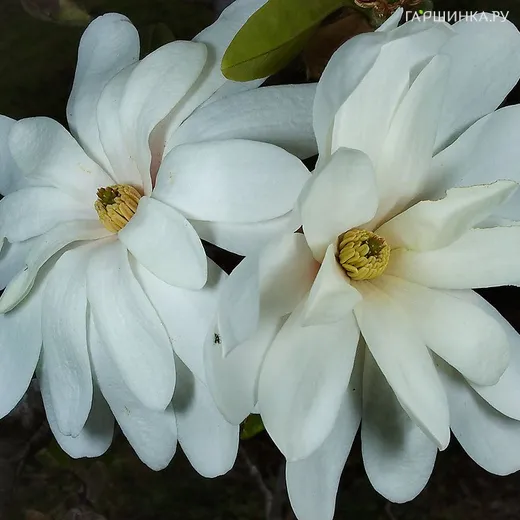 Магнолия Роял Стар звездчатая - Растение относится к семейству Магнолиевые. Это небольшое деревце, часто имеет кустарниковидную форму. Высота растения не более 3 м, магнолоя звездчатая является самым маленьким представителем рода. Листопадная, крона компактная, шаровидная. Листья узкие, эллиптической формы. В апреле задолго до появления листьев распускаются в огромном количестве душистые цветки. Каждый цветок диаметром примерно 8 см с многочисленными лепестками белого цвета. По форме напоминает звезду. Цветение продолжается около 3 недель. Сорт магнолии звездчатой Royal Star, вполне пригоден для выращивания в средней полосе. С возрастом морозостойкость растения повышается. Чаще вымерзают молодые деревца, поэтому для них необходимо укрытие на зимний период.