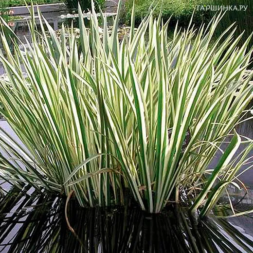 Манник большой Вариегата - Декоративный злак для сырых болотистых мест и мелководий. Агрессивен, энергично разрастается. Весной отрастает рано. Листья высотой 50-60 см, ниспадающие, узко-ремневидные, с зелёными и кремовыми продольными полосками, иногда с розовым оттенком. Стебли высотой до 100 см. Цветёт редко, невзрачными цветками, в июле-августе.