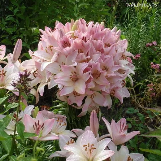 Лилия Марлен азиатская 2 шт розовая - азиатский многоцветковый гибрид, проявляющий способность к фасциации на генном уровне - на одном цветоносе огромное количество - 100 и более бутонов.