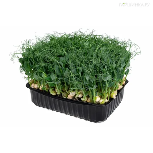 ГОРОХ ОВОЩНОЙ Микрозелень овощного гороха обладает восстанавливающими, общеукрепляющими и антиоксидантными свойствами. Нежный, напоминает свежий зеленый горошек. Горох в пророщенном виде богат антиоксидантами и ценными питательными веществами. Содержит много белка, витаминов (А, B1, В2, РР, С, D, Е, K), кальция, фосфора, железа, калия, магния и йода. Способствуют улучшению памяти, повышению энергии и физических сил. Кроме того, стимулирует метаболизм и повышает иммунитет. ВСХОДЫ ЧЕРЕЗ 3-5 ДНЕЙ