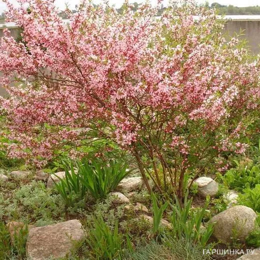 Миндаль Руслана - Красивоцветущее деревце. Цветки диаметром 2,5-3 см, простые, изредка махровые (7-10 лепестков), нежно-телесного цвета, к концу цветения почти белые, на длинных цветоножках, собраны по 1-3. Цветёт в конце апреля-мае в течение двух недель. Место солнечное, защищённое от ветра. Почва влажная, дренированная.