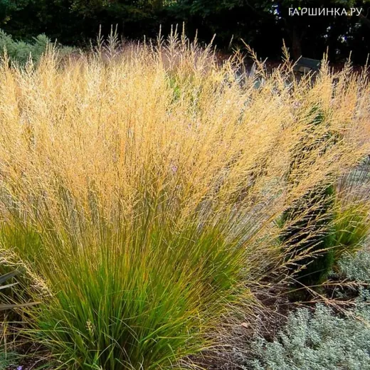 Молиния тростниковая Фонтан - Злаковое растение , которое отличается пышной ярко-зеленой листвой, приобретающей осенью золотистую окраску, и тонкими высокими цветоносами, на которых расцветают розовые соцветия в виде ажурных метелок.