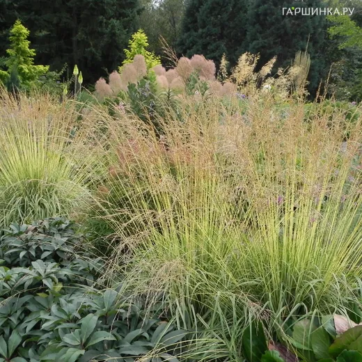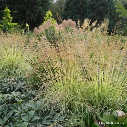 Молиния Эдит Дудзус - Представляет собой кочку, образованную длинными острыми листьями. Тонкие стебли немного отклоняются в сторону, а листья растут вертикально. Узкие остроконечные листья летом зеленые, а осенью желтеют. Сужаются к концу. Цветение данной молинии приходится на июль - август. В это время на длинных стеблях появляются небольшие фиолетовые метельчатые соцветия. Длина метелок - около 15 сантиметров. Сорт, в период цветения может достигать 180 сантиметров. Плохо переносит засуху, не устойчива к низким температурам. Подходящее место для посадки растения - полутеневые и солнечные участки.