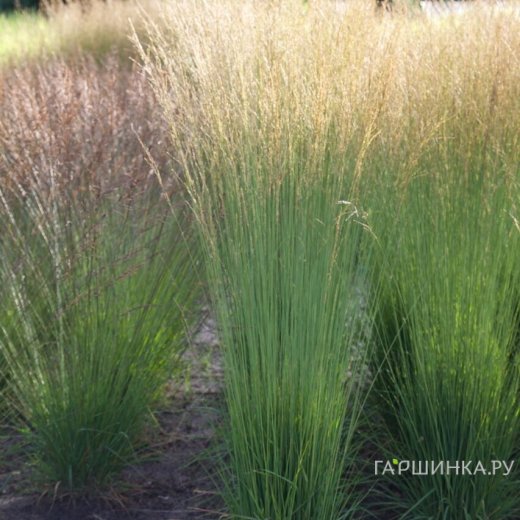 Молиния Хайдебраут - высота растения может достигать от 90 до 120 см. Куст имеет форму разветвленного веера, состоящего из прямостоячих побегов. Листья узкие (3-5 мм) и имеют ярко-изумрудный цвет, который осенью переходит в золотисто-коричневые тона. Соцветия представлены тоненькими, вертикально выпрямленными колосками или метелками светло-коричневого оттенка.