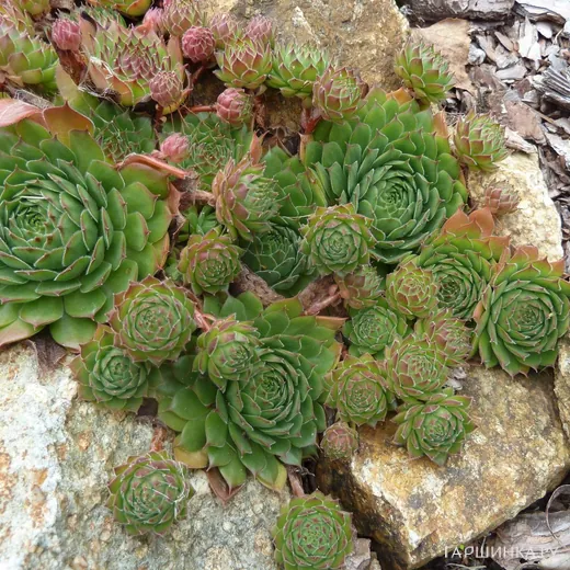 Молодило кровельное - это травянистое суккулентное низкорослое растение семейства Толстянковые. Розетка диаметром 15 см, высота 10 см, лист толстый, мясистый, коричнево-фиолетовые, зеленый, развернут, опушение легкое. Окрас может меняться в течении сезона.