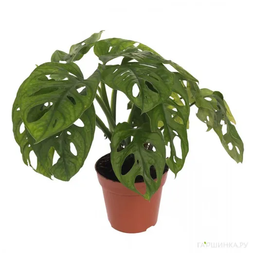 Монстера Манки Мэск - Это крупная лиана с причудливыми резными листьями, если не обрезать ее, вырастает до 6 метров. Кроме декоративной функции, она еще приносит пользу – ионизирует воздух помещения. Уход за ней довольно прост и под силу даже новичкам.