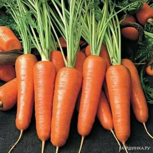 Среднеранний (105-115 дней от всходов до технической спелости) сорт. Розетка листьев полустоячая. Окраска поверхности, сердцевины и мякоти корнеплода – оранжевая. Корнеплод конический, тупоконечный, длиной до 15 см, диаметром 5-6 см, массой 80-250г, отличного вкуса. Корнеплод полностью погружен в почву. Сорт характеризуется устойчивостью к цветушности.