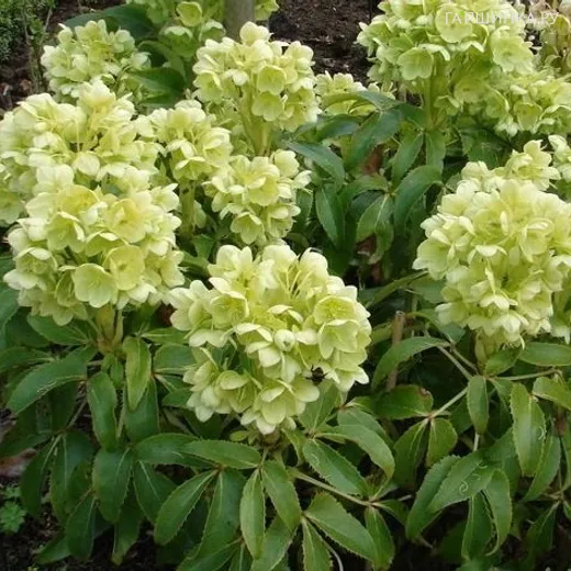 Морозник падуболистный - цветки крупные поникающие бело-зеленого цвета, которые держатся долго, с зимы до самого лета. Высота растения до 100 см. Период цветения март-май. Листья зимующие, очень плотные, кожистые, благородного темно-зеленого цвета, они хорошо выглядят еще при цветении, а затем отмирают, заменяясь новыми.