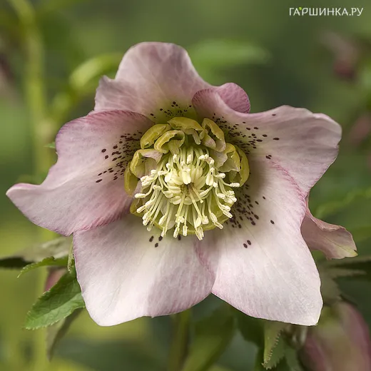 Морозник Претти Эллен Пинк - яркий многолетник с крупным махровым цветком нежно-розового цвета с бордовым крапом. Лепестки волнистые. Окраска розовая. На розовом фоне мелкий красный крап или полосы. Цветет очень продолжительно. Листья кожистые пальчато-рассеченные.