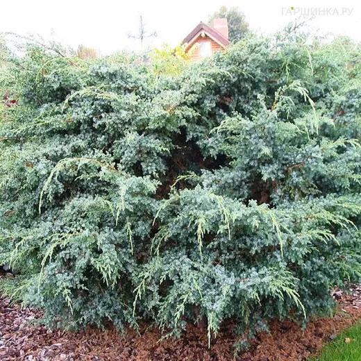 Можжевельник чешуйчатый Мейери - Широко известная и особенно любимая садоводами декоративная форма. В молодом возрасте довольно густо ветвится. Во взрослом состоянии это кустарник 2 - 5 м высотой. Побеги прямые, веточки короткие. Хвоя игольчатая, 6-10 мм длиной, до 1,5 мм шириной, очень густо-расположенная, выраженно серебристо-голубая, наиболее интенсивно она выражена в конце мая и в июле. Годичный прирост до 10 см. Завезена в Европу в 1914 году. Рекомендуется для озеленения крыш. Выносит городской климат, жару. Хорошо переносит обрезку.