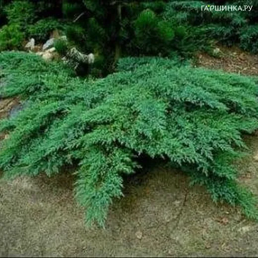 Можжевельник казацкий Рокери Гем - Вечнозеленый невысокий кустарник с широкой, распростертой, плотной, густой, асимметричной кроной. Взрослое растение достигает в высоту до 0,5 м и до 3 м в диаметре. Растет умеренно, ежегодный прирост в высоту 2-3 см, в ширину 20-25 см. Форма кроны широкораспростертая, со строго горизонтальными ветвями, расположенными этажами.