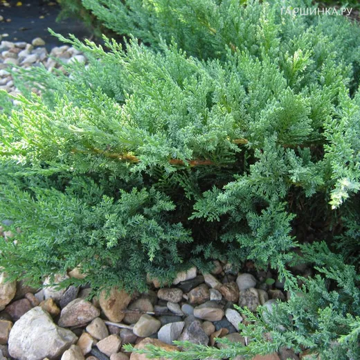 Можжевельник казацкий Тамарисцифолия - невысокий (1м высотой и 2м в диаметре) хвойный вечнозеленый кустарник. Крона горизонтально-направленная, распростертая. Короткие побеги растут вверх, поэтому ветки, располагаясь внахлест, с годами делают форму кустарника куполообразной. Хвоя, в основном, игловидная, слегка изогнутая, по 3 шт. в мутовке, светло-зеленая или голубовато-зеленая с белой полоской сверху. Растет медленно, годовой прирост составляет 3 см в высоту и 10-15 см в ширину. В возрасте 10 лет достигает 0,3 м в высоту при диаметре 1,5-2 м. Хвоя игольчатая, короткая, заостренная, от светло-зеленой до синевато-зеленой. Шишки округлые, 0,5-0,7 см, сначала зеленые, затем темно-синие с сизым налетом. Солнцелюбив, но выносит притенение. Благодаря неприхотливости кустарник любим садоводами. Обладает бактерицидными и инсекцидными свойствами.