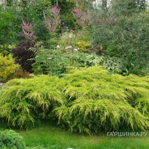 Можжевельник средний является не существующим в природе видом, к которому относятся гибридные стелющиеся сорта, не поддающиеся видовой идентификации.