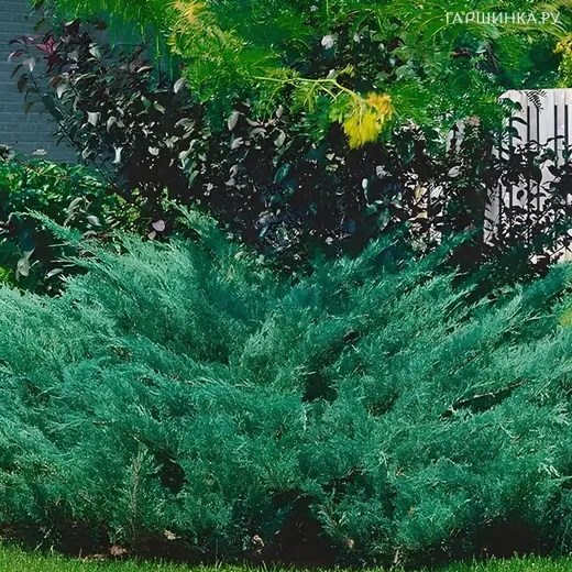 Можжевельник Блю Дануб казацкий - это декоративный кустарник высотой до 1 метра, шириной – 2,5метра. Имеет быстрый рост – к 10 годам растение достигает отметки в высоту 0,5 м, в ширину оно будет 150 см. Крона букетная и раскидистая, занимает довольно много места. Кора красноватая, на зрелых побегах наблюдается расслоение. Хвоя светло-голубая, игольчатая, к осени приобретает сизый оттенок. Длина иголок около 6 миллиметров. Корни поверхностные, но обширные. Шишкоягоды формируются круглыми или овальными. Они окрашены в темные или бурые тона с сизыми переливами, в размерах достигают 50-70 мм. Употреблять их в пищу нельзя: ягоды обладают высокой токсичностью. Кусты морозостойки - до -34 градусов.