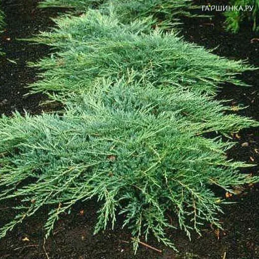 Можжевельник горизонтальный Джейд Ривер - Почвопокровный хвойный кустарник, во взрослом состоянии высотой до 0.3 м при диаметре 1.5 м. Имеет стелющуюся крону с приподнятыми вверх побегами. Хвоя игольчато-чешуйчатая, серебристо-зеленого цвета, летом - с особенно насыщенным голубым оттенком, который в полной мере проявляется на солнце. Зимой хвоя приобретает фиолетово-бронзовый отлив.