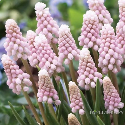 Мускари Pink Sunrise имеет нежно - розовый окрас соцветия. Высота взрослого растения достигает  15 см. Цветет Мускари Pink Sunrise в мае.