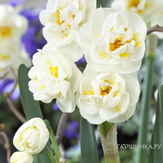 Нарцисс Брайд махровый 5шт - Эффектный представитель махровых нарциссов белой окраски. Цветы ароматные, с кремово-белыми лепестками и со светло-желтым центром. Высота растения — около 35 см. Диаметр цветка — до 10 см. Цветет в апреле в течение 14-18 дней. Сорт очень хорош для выращивания на срезку, для посадки в клумбах, цветниках и пейзажных посадках.