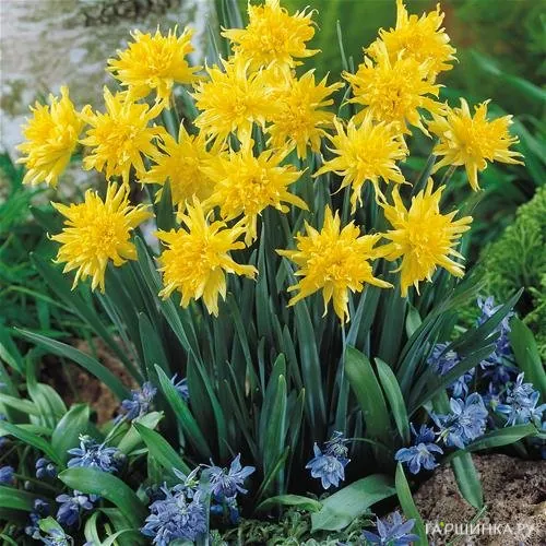 Продавец: ИНН 350902477384Нарцисс Rip Van Winkle. Доли околоцветника имеют яркую желтую окраску и достаточно острые кончики. А выросты коронки образуют махровый центр цветка. По виду они больше похожи на георгины, чем на своих «собратьев». В зависимости от климата лепестки могут иметь большее или меньшее количество зеленых бликов и вкраплений. Довольно неприхотливы, продолжительность цветения - 10 дней. Высота: 20 см. Срок цветения: апрель-май.