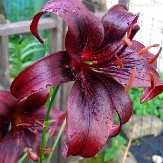 Лилия Найт Флайер тигровая/ 2шт - Цветки крупные, диаметром 16 см, бордовые, с тёмным редким крапом, чалмовидные, направлены в стороны и вниз. Зацветает в июле. Высота растения 120 см.