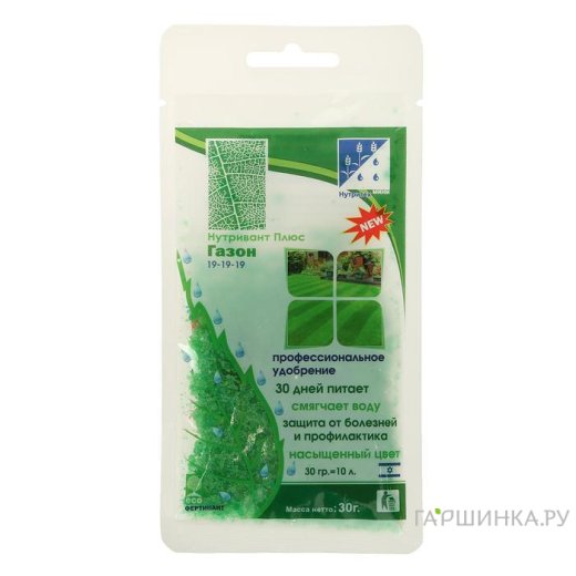 Нутривант плюс Газон 19-19-19. Азотосодержащее фосфорно-калийное удобрение с микроэлементами и фертивантом. Предназначен для поверхностной обработки.