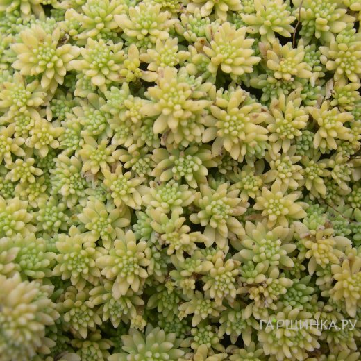 Очиток (седум) Испанский Ауреа - почвопокровный многолетник высотой 5-10 см. Цветет в середине лета мелкими беловато-желтыми цветками, собранными в соцветия. Листья мясистые, мелкие, густые.