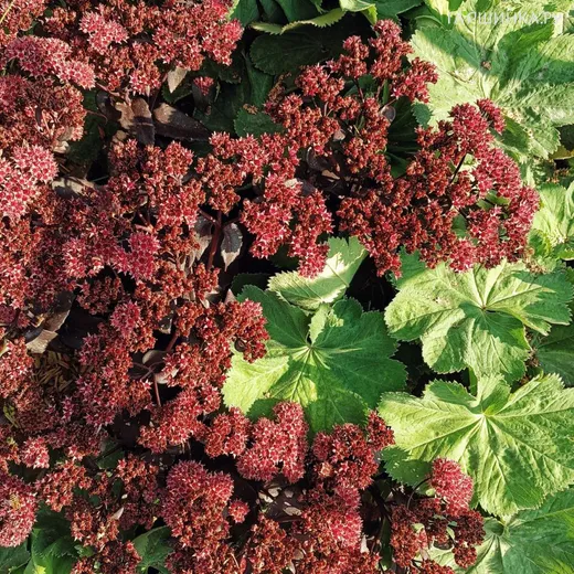 Очиток (седум) Джози Аубергайн - это травянистое суккулентное низкорослое растение семейства Толстянковые. Высота 30-40 см, ширина 45-60 см. Листва толстая, мясистая, тускло-пурпурная. Соцветие густое щитковидное. Постепенно из этих густо сгруппированных бутонов в середине лета появятся крошечные звездообразные розовые цветы, которые по мере отмирания мягко изменятся на лилово-розовые, а осенью - на каштаново-бронзовые.