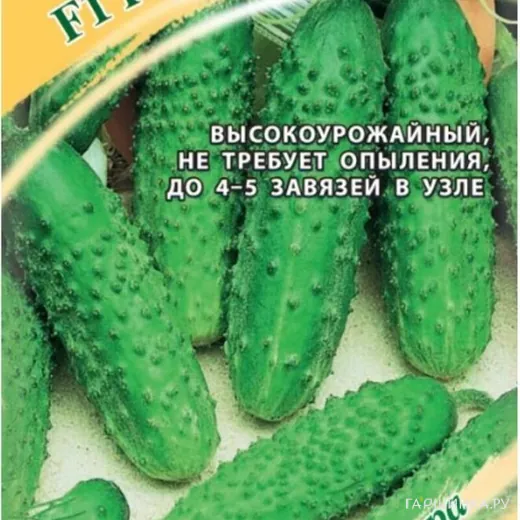 Раннеспелый (45-50 дней от всходов до плодоношения) партенокарпический гибрид с букетным заложением завязей (до 4-5 в одном узле). Растение с мощным ростом, слабоветвистое. Рекомендуется для выращивания в пленочных теплицах. Благодаря теневыносливости подходит для выращивания на балконе, лоджии и в комнатных условиях на подоконнике. Посев на рассаду в конце апреля. Высадка рассады в грунт в конце мая – начале июня в фазе 3-4-х настоящих листьев. Посев непосредственно в грунт – в мае – июне. Растения формируют в один стебель. Схема посадки в теплице — 30х70 см. Плоды цилиндрические, длиной 12-14 см, темно-зеленые, бугорчатые, белошипые, массой 120-130 г. Прекрасно подойдут для засолки, маринования и употребления в свежем виде. Гибрид устойчив к корневым гнилям, мучнистой росе, оливковой пятнистости, относительно устойчив к ложной мучнистой росе. Ценится за высокую урожайность и отличное качество вкусных, ароматных зеленцов. Урожайность — 14-16 кг/м2.