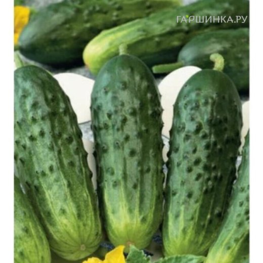 Среднеспелый (46-52 дней от посева до плодоношения) пчелоопыляемый сорт, предназначен для выращивания в открытом грунте и под временными пленочными укрытиями. Растение сильноветвистое, длина главной плети - 140-200 см. Зеленец овально-цилиндрический, зеленый с продольными светлыми полосами, крупнобугорчатый, шипы сложные, черного цвета. Длина плода 10-14 см, масса 65-95 г. Хрустящий. Вкусовые качества высокие. Устойчив к комплексу болезней. Пригоден для консервирования и засолки. Посев на рассаду в начале мая. Высадка в грунт в конце мая - начале июня в фазе двух-трех настоящих листьев. Посев в открытый грунт проводится в конце мая - начале июня. Схема посадки 40х40 см.