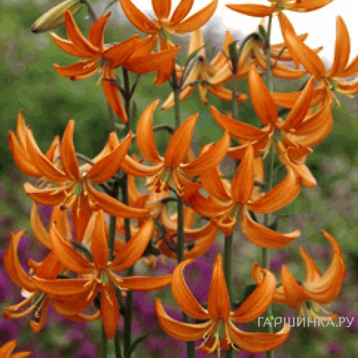 Лилия Оранж Мармелад кудреватая 1шт Эта лилия связывает все мартагоны вместе. Порожденный от перекрещивания martagon гибридного 'Dalhansonii', потомков L. martagon и L. hansonii, с L. tsingtauense, он венчает славу martagon. Первоначально выпущенный под именем 'Тинсон' в 1972, был повторно зарегистрировано под именем 'Orange Marmelade'.