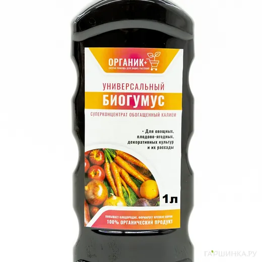 Органик+ БиоГумус жидкий - одно из самых эффективных органических удобрений. Вермикомпост (Биогумус) производят лучшие черви Dendroba Enaveneta. Биогумус может использоваться для всех видов растений и обеспечивает их необходимым набором питательных, а также биологически-активных веществ, способствующих их полноценному росту и повышенной урожайности. Не содержит патогенной микрофлоры и возбудителей, что подтверждается регулярными лабораторными исследованиями.