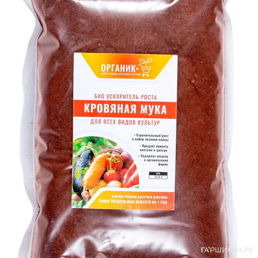 Натуральный ускоритель роста и цветения. Благодаря быстрому разложению в почве обеспечивает растение высоким процентом органического азота. Способствует устранению дефицита железа. Повышает плодородие почвы.