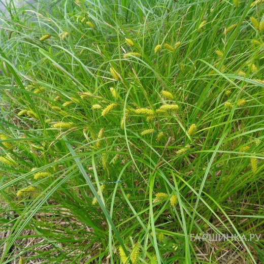 Осока просяная - Серо-зелёное растение с восходящими ползучими корневищами, дающее длинные тонкие побеги и центральные репродуктивные побеги. Стебли тупо-трёхгранные, гладкие, 10—40 см высотой. Листья жёсткие, сизо-зелёные, большей частью прямые, 2—4 мм шириной, длинно заострённые, короче стебля.Соцветие 5—8(16) см длиной, из значительно расставленных колосков.