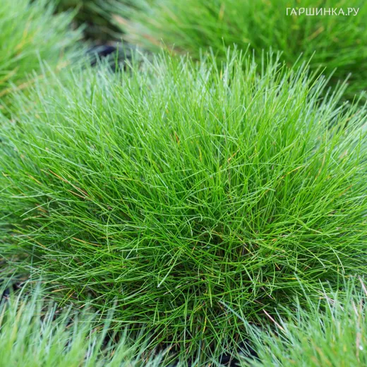 Высота до 10 см, ширина до 60 см. Листья жесткие, узколинейные, нитевидные, темно-зеленые.