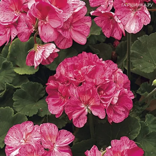 Пеларгония зональная Сэрвивор Пинк Батик - кустовое растение-многолетник. Высота 20-25 см. Цветы крупные розовые с более теплым излучением из центра, в малиновый крап и полосочки. Шапочки крупные.