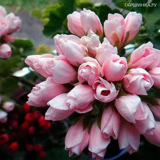 Пеларгония тюльпановидная Эмма – многолетнее растение. Цветки крупные, в форме нераскрытого тюльпана с лепестками нежно-розового цвета.