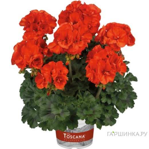 Пеларгония зональная Toscana Dolce Vita Sylvia Orange - Формирует компактный, красивый куст шаровидной формы. Цветение раннее, обильное и продолжительное. Цветки крупные, полумахровые, насыщенного оранжевого цвета.